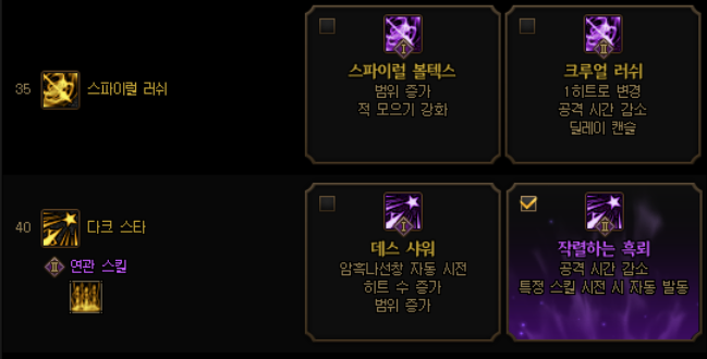 스킬 사용시 스킬 계열(잠식, 흑뢰, 잠식+흑뢰)에 따라 타격 대상에게 효과를 부여하는 스킬이지만..