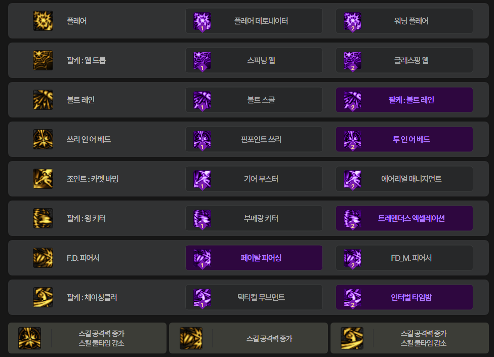 플레어 채용/미채용 두 가지 스킬트리로 나뉩니다.