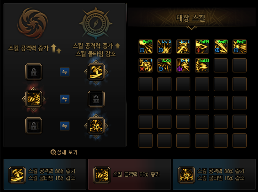 스킬강화의 경우 45/75/80 고정이고, 제 세팅이 쿨감이 낮아서 세개 다 스킬강화를 주면 전부 2회가 찍히는데