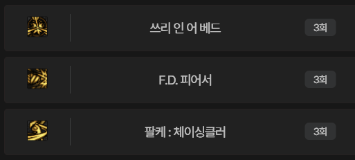 얘네 셋 중에 제일 횟수 높게 찍히는거 주셔도 되고