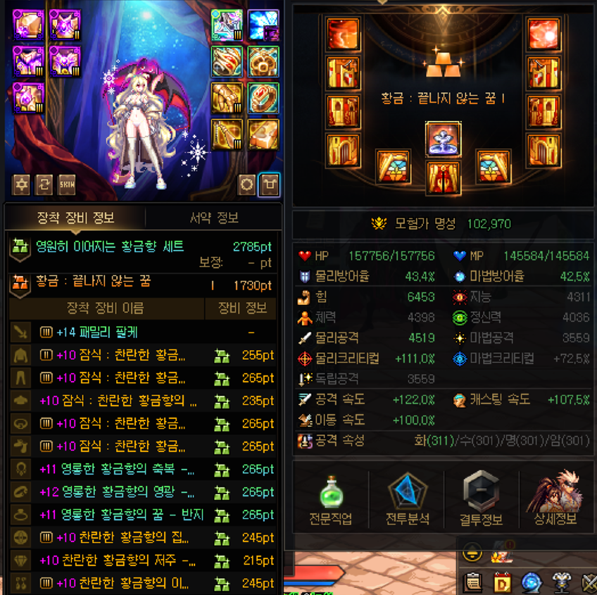 장비 세트는 태초+에픽 잘 뜬거 위주로 가시면 됩니다.