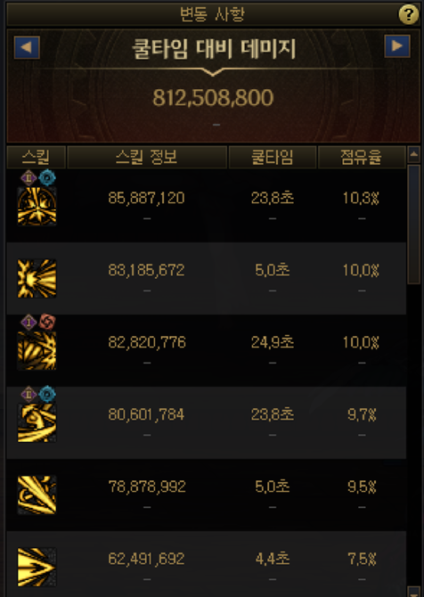 마나소모량 20% 증가, 쿨타임 5% 증가 페널티가 달려 있다는 점 염두에 두시면 되겠습니다.
