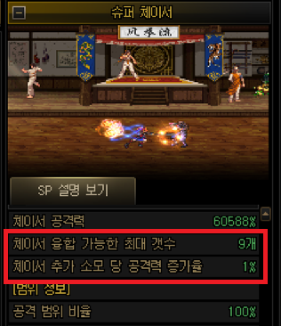 이때 슈퍼체이서는 소모한 체이서에 비례하여 데미지가 증가하기 때문에 특히 주의해주셔야 합니다.