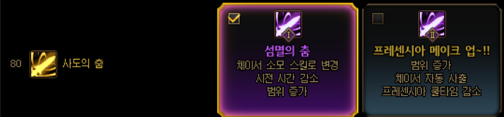 (사도의 춤vp2 채용시 최대 60초 감소가능)