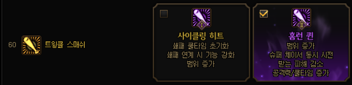 다만 그만큼 쇄패 데미지가 감소하고 이로인해 서로 쿨타임을 묶이게 되는 문제가 생겨 자유로운 스킬사용이 제한되어 추천하지 않습니다.