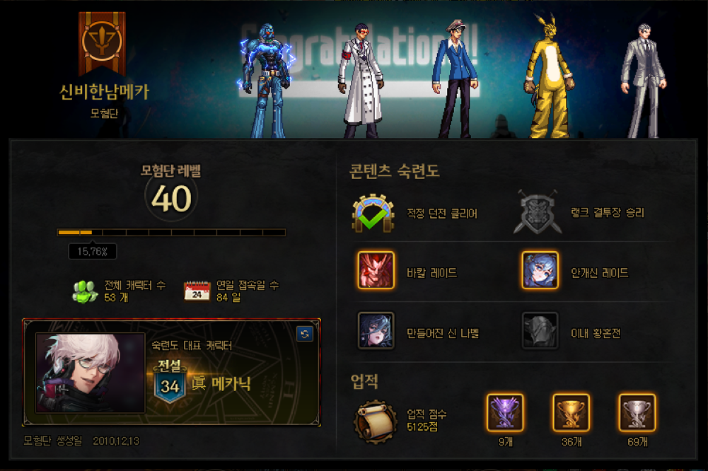 일단 본인 모험단이며, 모험단내 저 5캐릭터는 전부 남메카다.