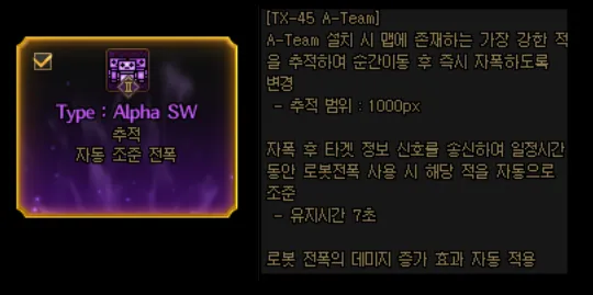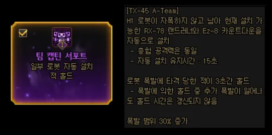 전폭 타게팅 지정으로 주변에 있는 설치된 로봇들을 전부 타게팅 지점으로 날려서 폭파시키는 점이 장점이다.