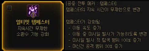 바이퍼와 템페스터같은 소환형 로봇 모두 공격을 안한다는 문제점이 존재하여, 진각성 이후 버려지는 스킬이다.
