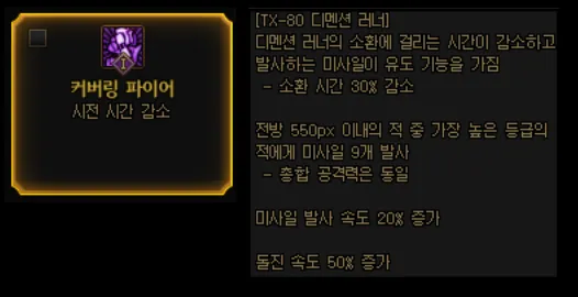 1. 주요스킬(ex 스패로우 팩토리, 바이퍼제로, 디멘션러너등) 들의 쿨타임이 초기화 될 경우 연속으로 사용 가능함.