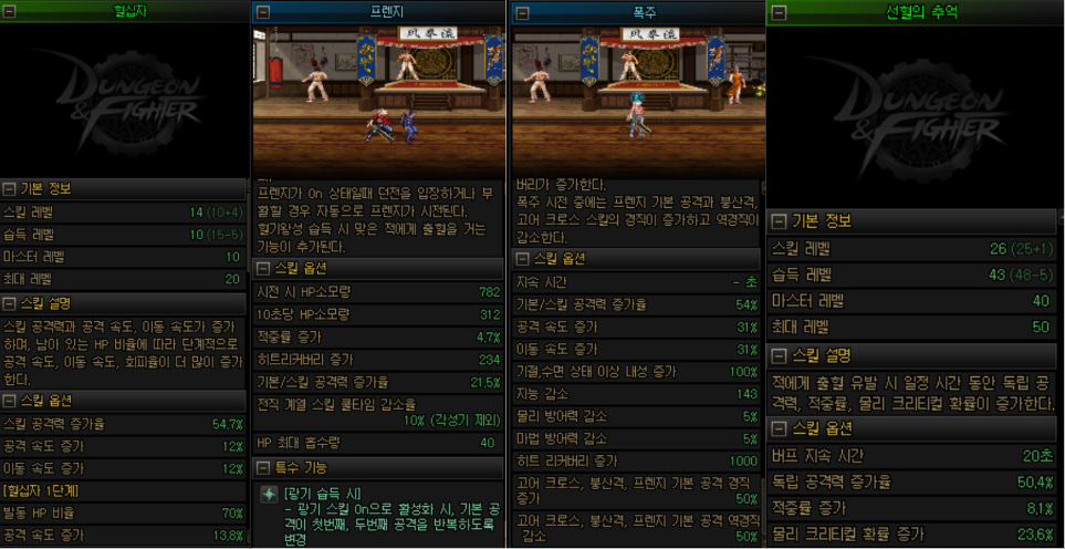 (필수!)하여 퍼쿨 1위의 격노와 블러디 레이브 두 스킬을 강화시켜 지속딜에 힘을 싣는 35렙(쿨타임 약 10초 근처)
