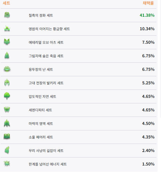 위에서도 말씀드렸다시피 쿨타임이 아주 중요한 친구에요! 그러다보니 정화셋을 아주 많이 사용하고! 제일 추천 드리긴합니다