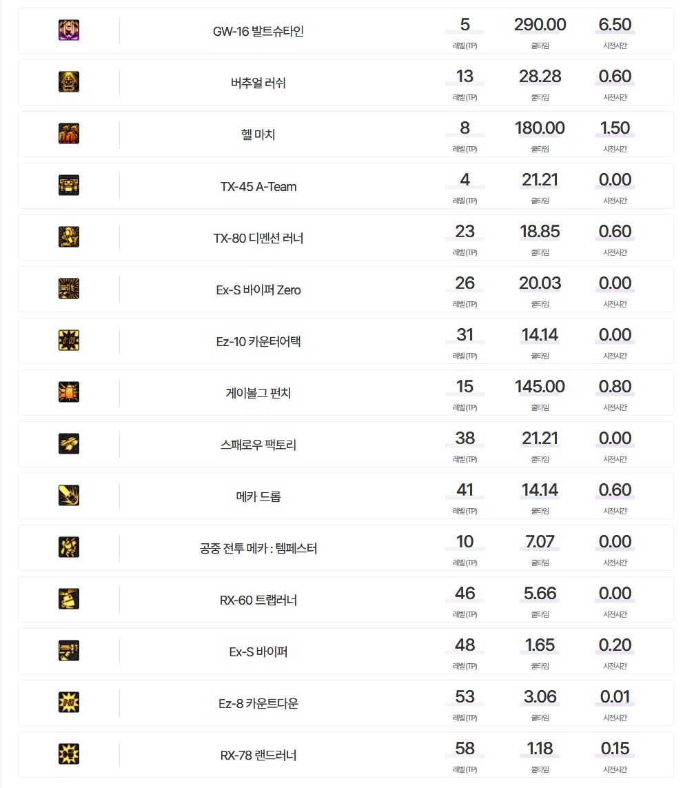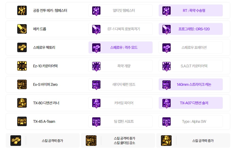 1레벨만 찍어두는 스킬 : 라이징샷, Ex-S 바이퍼, Hold & Go, 카모플라쥬, 공중 전투 메카 : 템페스터 (위에서 설명한 이유)