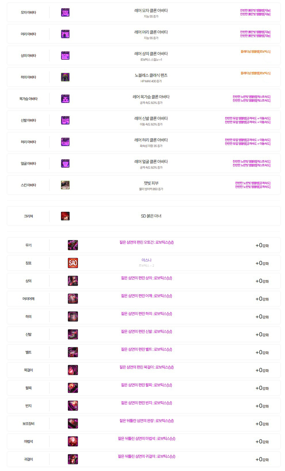 - 메카닉을 좋아하여 현재 메카닉(남)만 다섯캐릭터를 키우고 있음