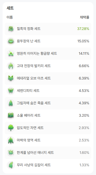 순위 1등은 칠흑으로 맞추어져 있지만 초반 모험가분들은 먹는 세트에 따라서 일단 세트를 맞추시는게 좋습니다.