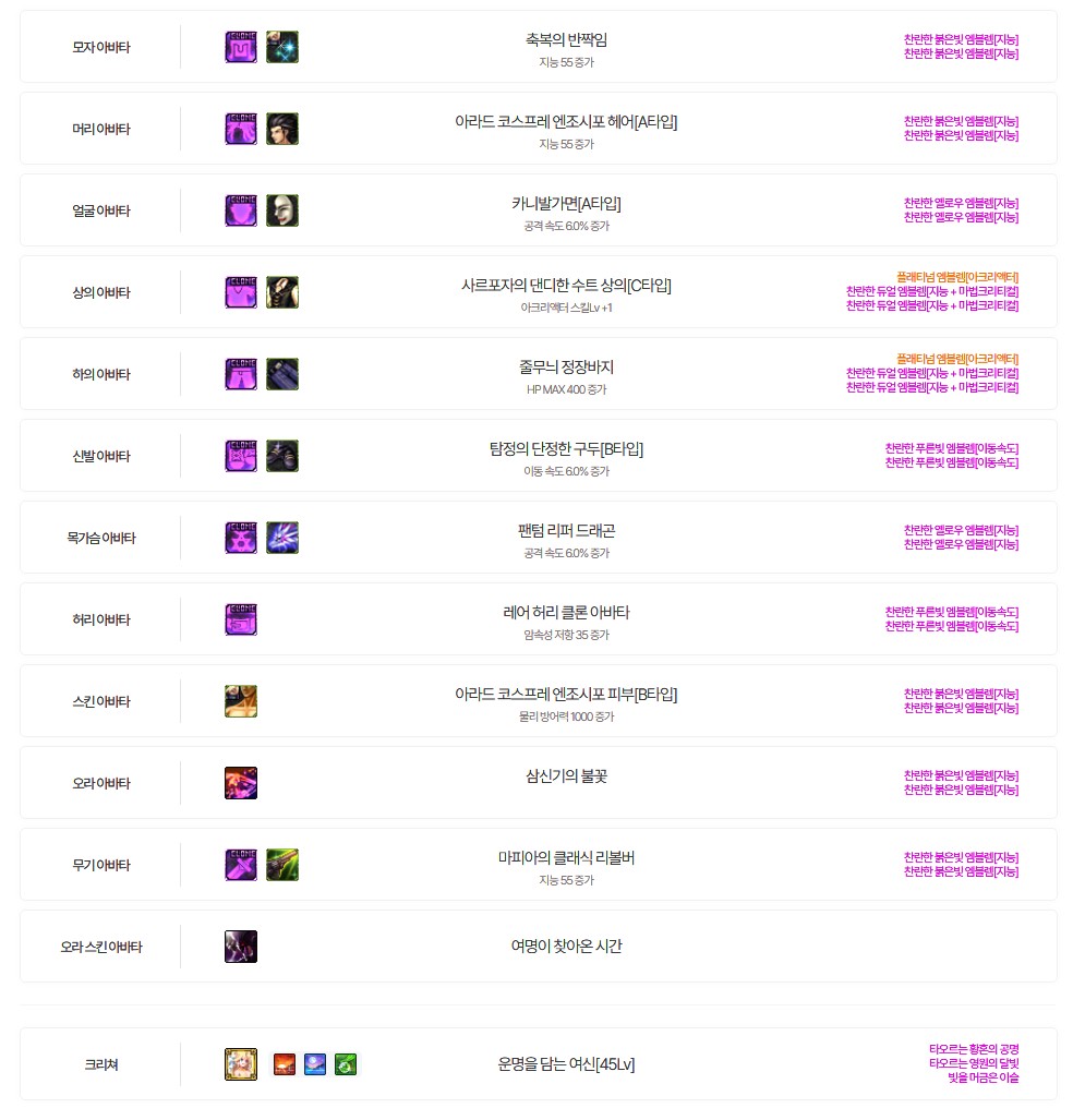 ■ 추천 아바타 옵션