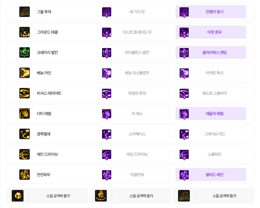 장비 추천 > 아바타 > 버프 강화 > 스킬 개화 > 스킬정보