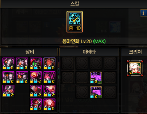 레어무기아바타는 고레벨 스킬일수록 레벨링 효율이 높으니 80 추천합니다