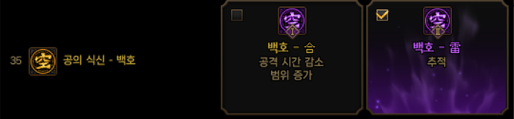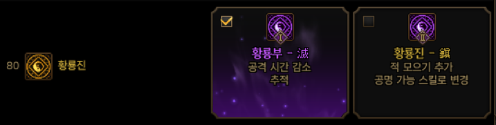 보통은 주력기인 백호 칠조격 황룡진을 추천하고 딜증가를 쓰면 됩니다