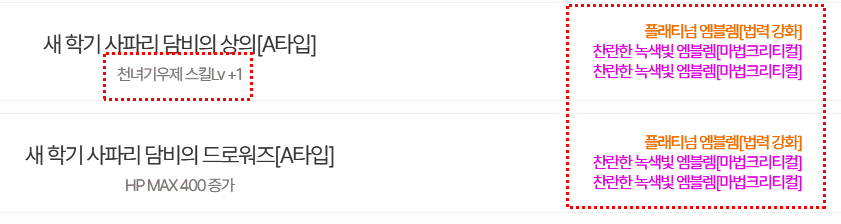 상의아바타 옵션으로 천녀기우제 + 법력강화 엠블렘 2개를 박는것이 가장 효율이 좋습니다.