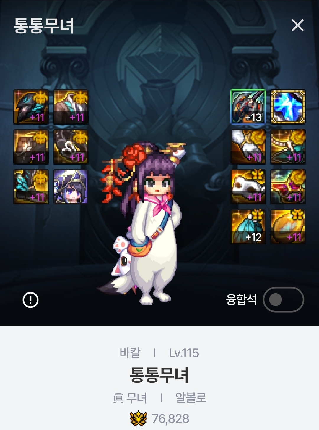 여기서 세트포인트를 만들어 남는 포인트를 활용해 ,방어구 융합장비를 고유로 껴야 효율적입니다.