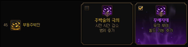 - 참조 : 마혼제령술 1개는 던담딜 소폭이라도 상승하고자 찍었으며, 부동주박진 1개는 스킬 개화에 무적 사용하는 경우가 있어 1개 찍어뒀습니다. (스킬개화 참조)