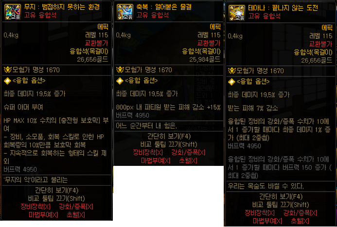 - 목걸이 : 고유:무지,축복(일반유저 졸업템), 고유:테아나(11증 이상 고증폭 졸업템)