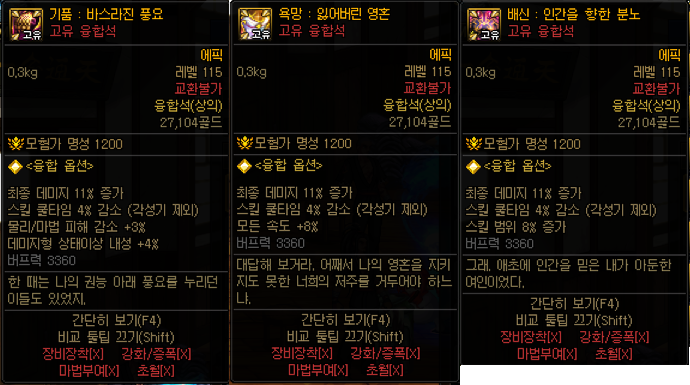 원래 같으면 욕망(모든속도)가 1순위이지만, 도전형 컨텐츠를 즐길수록 그리고 이후 디레지에 레이드를 대비하면 기품(방어)이 더 좋다고 생각합니다.