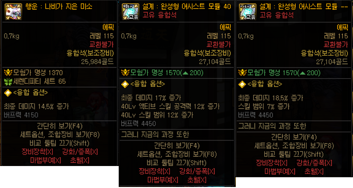 설명) 무녀는 쿨감의 효율이 좋은 직업으로 베누스 고유장비의 효율이 매우 높습니다. 나벨 특수장비를 세트융합석을 장착해 세트포인트를 확보하고 방어구 융합석은 고유로 장착해 봅시다