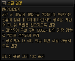 VP1) 유도형 스킬로 바뀌어 좋다고 생각할수도 있지만, 범위가 500px로 애매하고 기존의 스킬도 맞추는데 어렵지않기에 VP 낭비입니다.