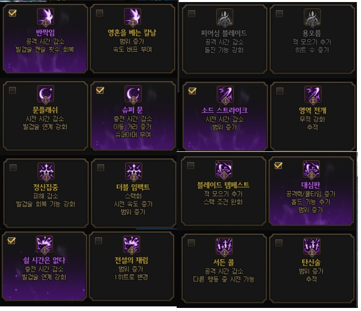 - 참마검 버리는 스킬트리면 채용해야 함. 즉발 추적이 매우 좋으나 쿨퍼뎀 따지면 그닥