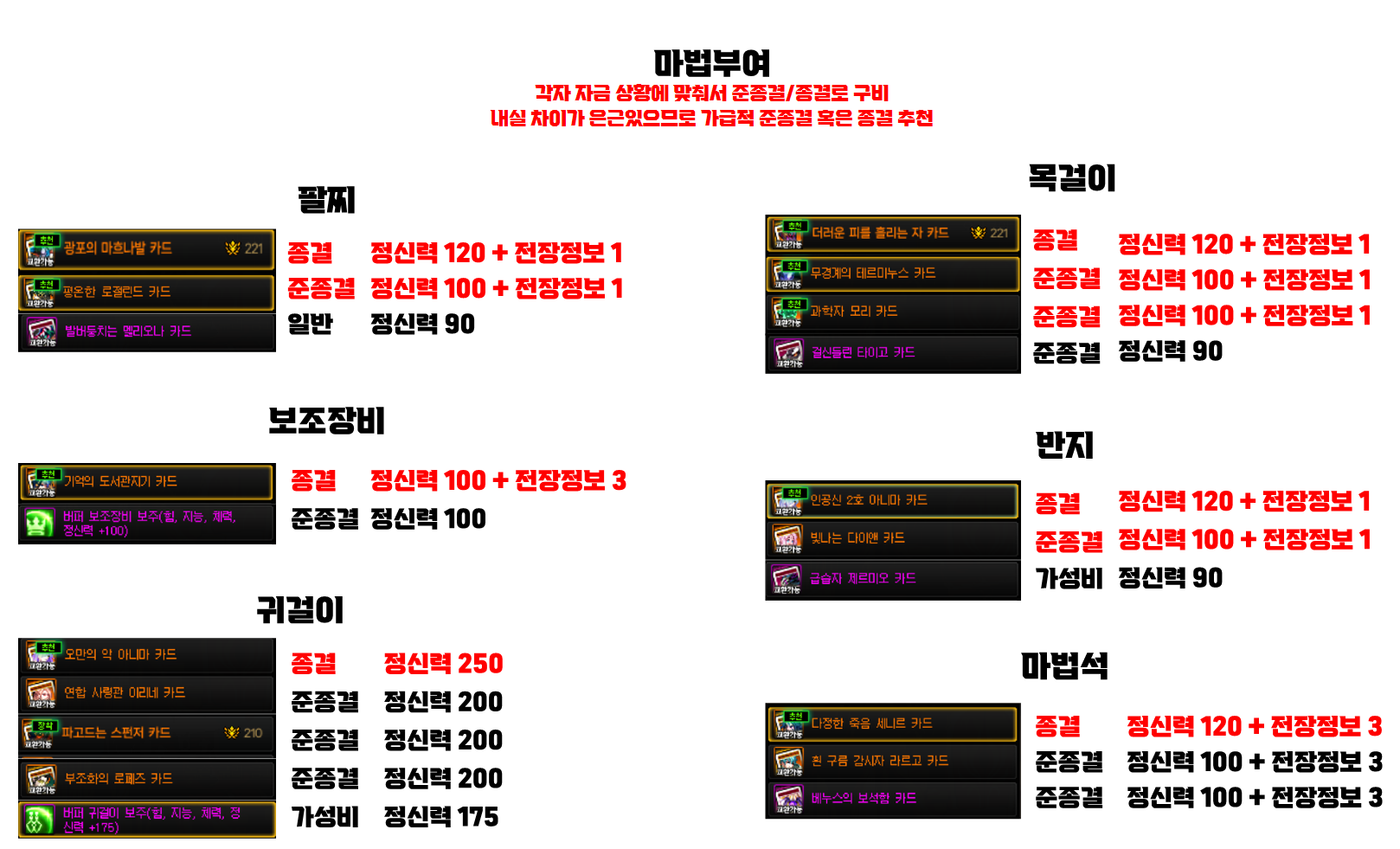 마법부여는 구분하시기 편하도록 이미지로 편집하여 작성하였습니다.