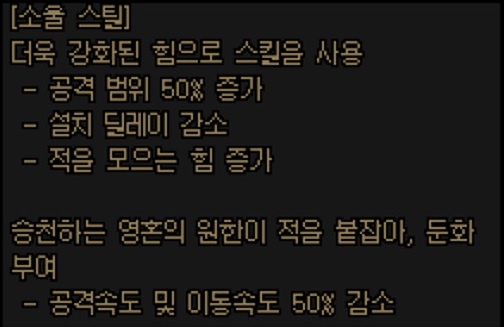 소울 스틸과 함께 럼블독을 쓰지만 몹이 엄청나게 움직이거나 순간이동 해버린다면 그대로 딜이 날아가버리는 바보 스킬이였지만