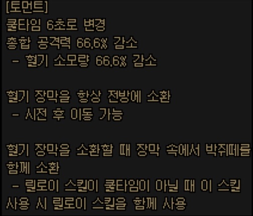 아쉽지만 쿨타임 감소는 사라졌네요.