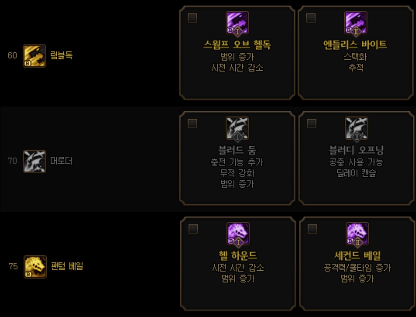 저희 블러드메이지는 다음과 같은 스킬개화를 받게됐습니다.