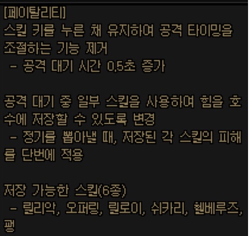 원래 페이탈리티는 누르고 있으면 누르고 있는 동안 자세를 어느정도 유지하고 놓으면 발사하지만