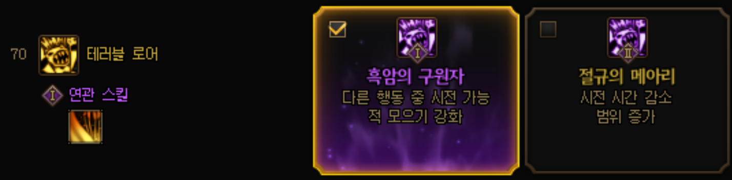 1. 테러블 로어 : 1각 쿨타임을 감소시켜준다!!