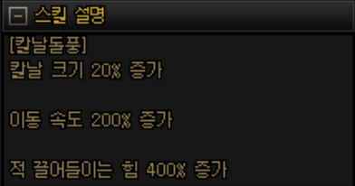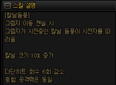 마찬가지로 칼날돌풍은 딜링기로 쓰기 어려운 스킬입니다.