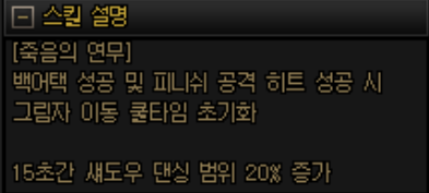 섀도우댄서의 스킬 콤보를 부드럽게 만들어주고 딜 압축을 빠르게 해주는 핵심 스킬입니다.