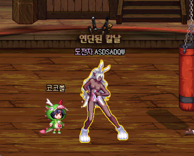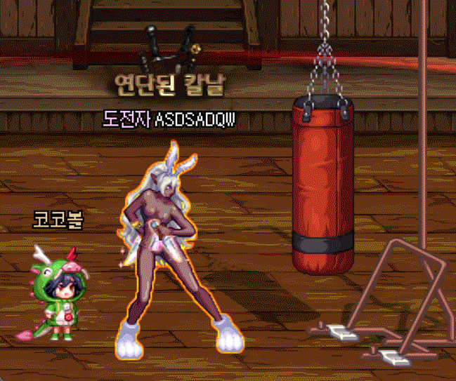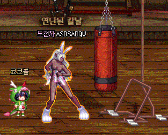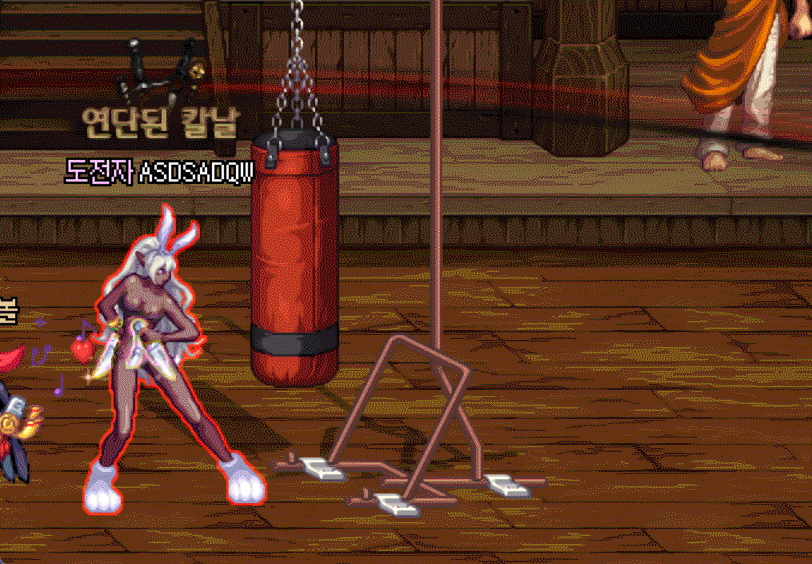 분명 샌드백의 정면을 향해 파이널 디스트럭션을 사용했으나 백어택 판정이 적용(정면 파디는 어퍼컷날림)되고 이후 캐릭터가 반투명 상태(100% 백어택 상태)가 유지되어있습니다.