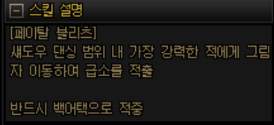 참고로 페이탈 블리츠는 기본적으로 [그림자 이동]의 스킬 캔슬 효과를 가지고있어서