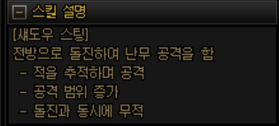 이를 이용해 섀도우댄서는 많은 스킬을 빠른 시간 내에 우겨넣는 것이 가능합니다.