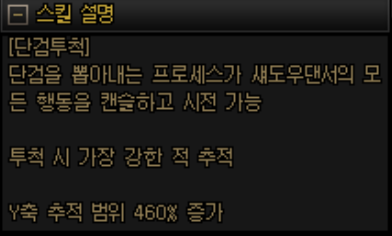 기존 단검투척은 잡몹의 체력이 너무 낮으면 섀도우 댄싱을 발동시키기도 전에 적이 죽어버립니다.