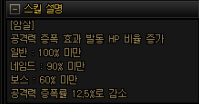 "[Lv.40] 파이널 디스트럭션" / "[Lv.70] 섀도우 스팅" / "[Lv.75] 죽음의 연무"