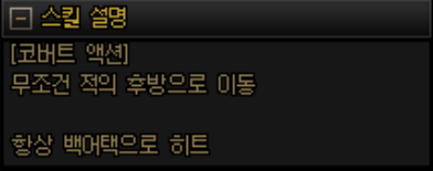 다만 온전한 성능을 뽑기 위해선 여전히 적과 멀지 않은곳에서 백어택으로 스킬을 시전해야하며 적과 x축 상에 나란히 있어야 합니다.