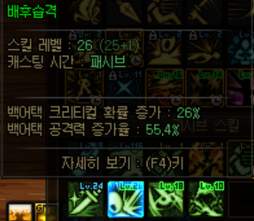 하지만 여기서 더 중요한 점은 [그림자 유도분신]의 100% 백어택 유틸은 한 번 썼을 때 두 개의 스킬에 적용이 가능하다는 점입니다.