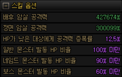 기존 섀도우댄서의 탈리스만 퍼펙트 어쌔신과 동일한 옵션입니다.