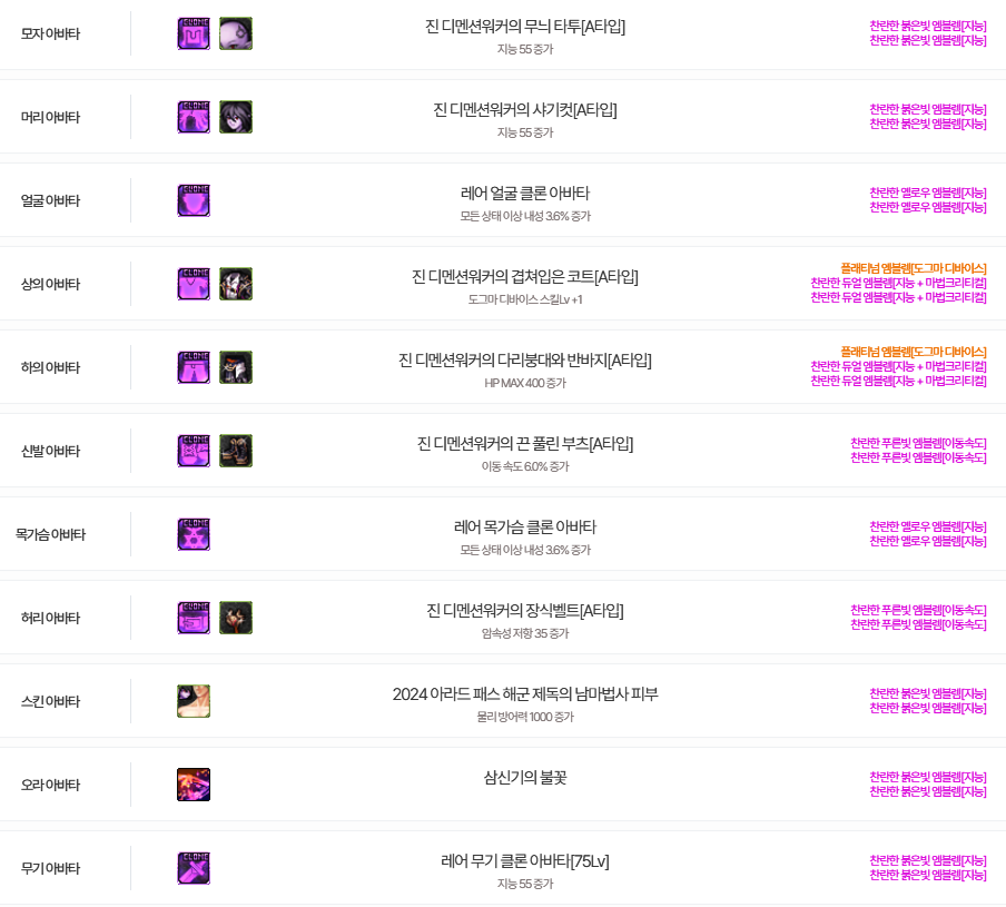 얼굴, 목걸이의 경우 모든 상태이상 내성 3.6% OR 공격속도 6% 2 중 택 1(큰 차이는 없음)