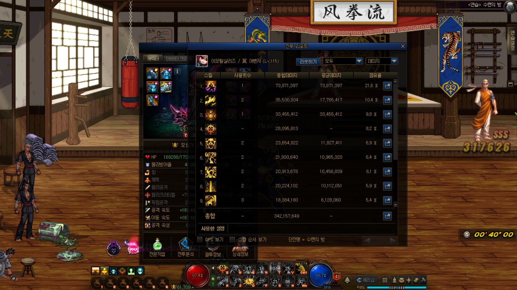 40초 딜표에서는 리퍼-파강-재앙-하울링 순으로 지분이 높았습니다.