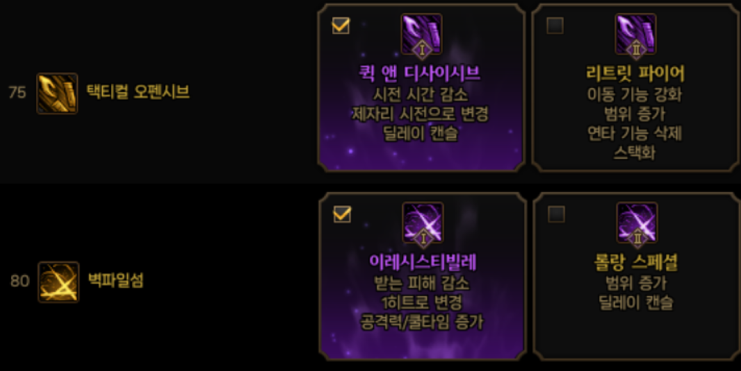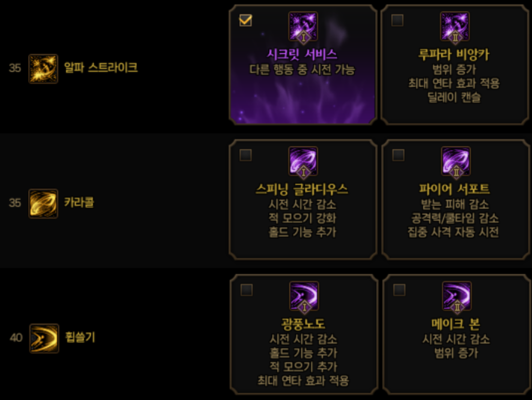 저는 간단하고 다루기 쉬운 스킬들 위주로 사용하는 스타일입니다.