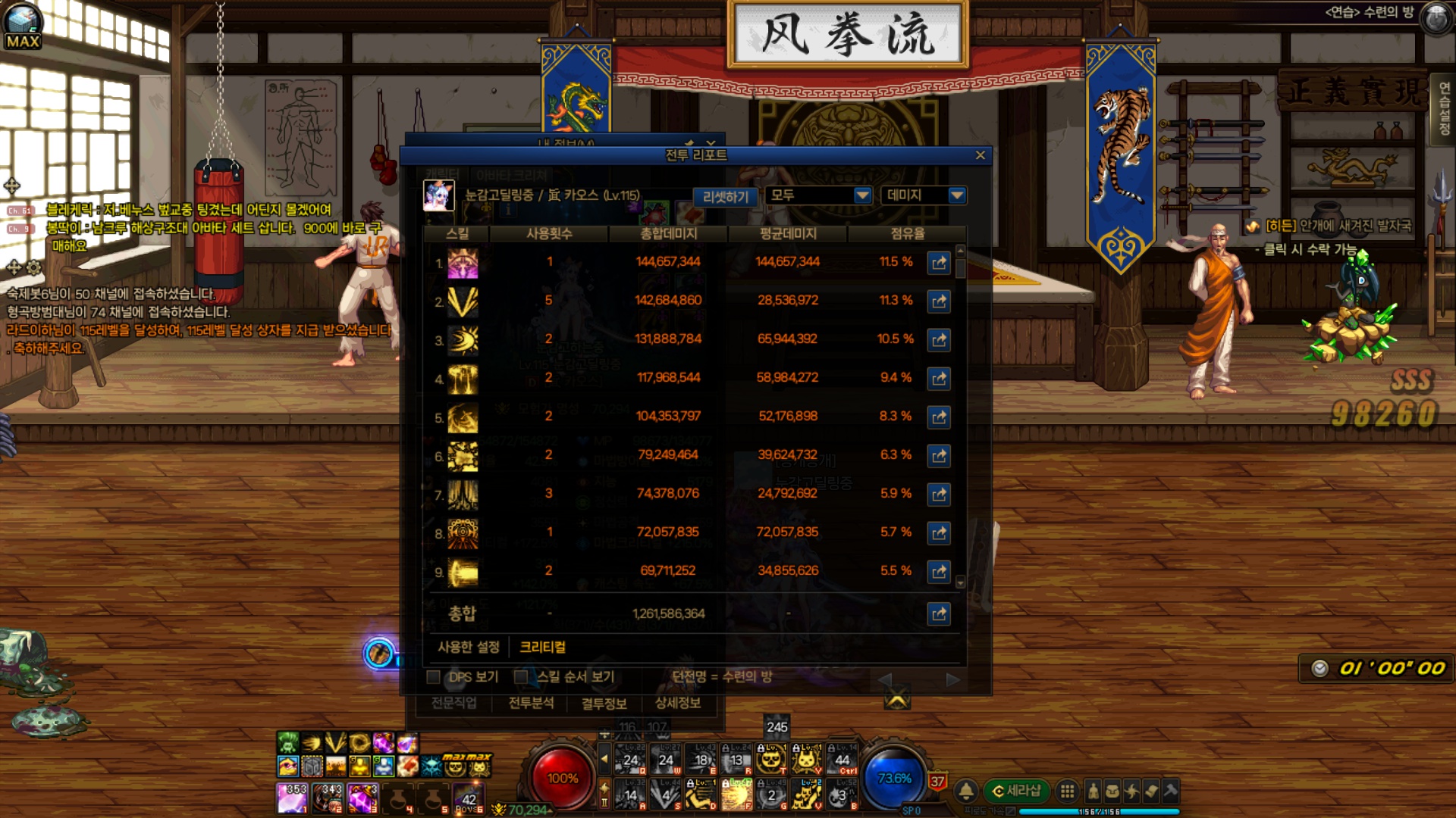 먼저 체술마신 1분딜표입니다. 총 딜 12억 6천만